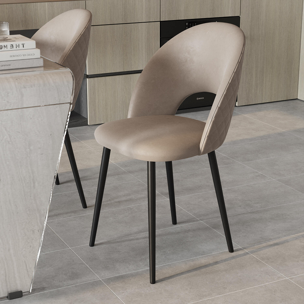 Мягкий стул «Тоби» подойдет для создания обеденной группы в современном стиле, лофт или неоклассика. Дизайн модели отличается скругленной спинкой и декором в виде строчки ромбовидной формы с наружной части спинки. Обивка выполнена из мягкого велюра с элегантным блеском. Комплект из 4-6 стульев станет изящным акцентом в интерьере кухни. Также стул можно использовать вместе с туалетным или письменным столом.