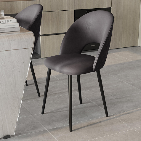 Мягкий стул «Тоби» подойдет для создания обеденной группы в современном стиле, лофт или неоклассика. Дизайн модели отличается скругленной спинкой и декором в виде строчки ромбовидной формы с наружной части спинки. Обивка выполнена из мягкого велюра с элегантным блеском. Комплект из 4-6 стульев станет изящным акцентом в интерьере кухни. Также стул можно использовать вместе с туалетным или письменным столом.