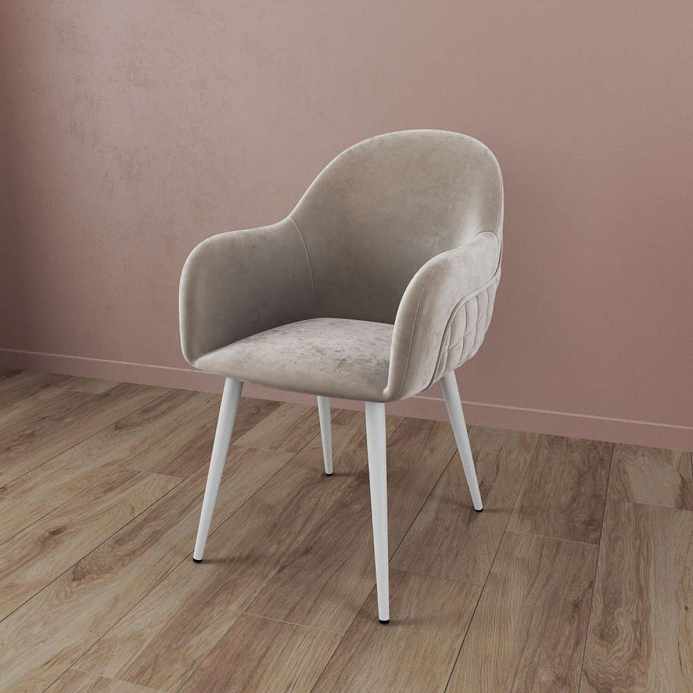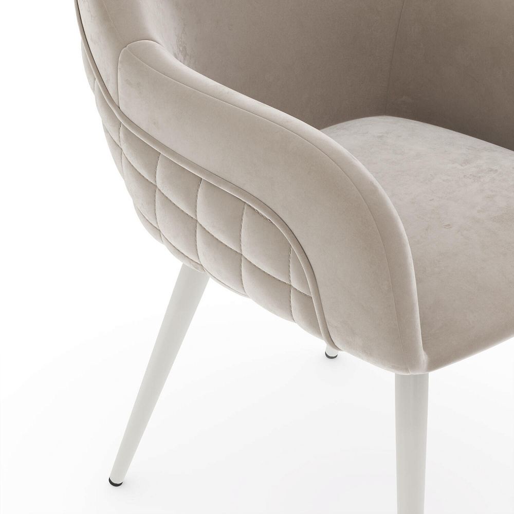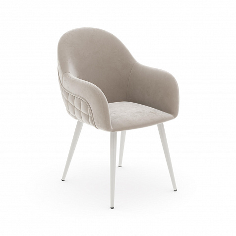 Мягкий стул с подлокотниками «Майкл» станет частью обеденной группы в современном или классическом интерьере. Обратная сторона спинки и подлокотников украшена ромбовидной строчкой и объемным кантом. Легкий блеск велюровой обивки придает модели изящность, а прямые металлические опоры дополняют сложившийся образ. Комплект из нескольких стульев поможет создать акцентную обеденную зону в интерьере. Также стул можно использовать вместе с туалетным или письменным столом.