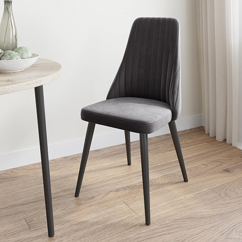 Мягкий стул «Ларри» — лаконичная модель в современном дизайне. Модель отличается высокой скругленной спинкой с ненавязчивой вертикальной прострочкой. Обивка выполнена из мягкого велюра с элегантным блеском. Комплект из 3-4 стульев поможет создать уютную обеденную зону на кухне или столовой. Также стул можно использовать в качестве дополнения к письменному или туалетному столу.