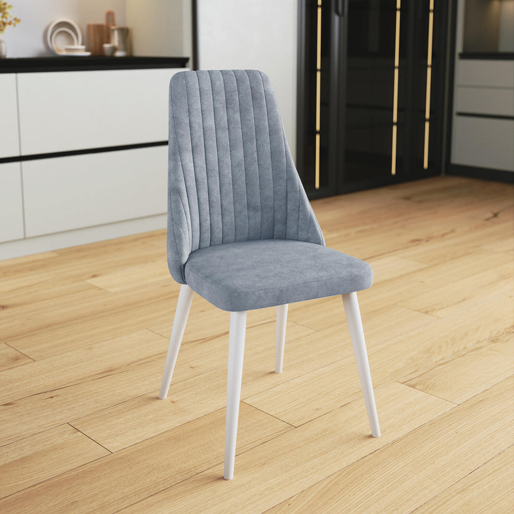 Мягкий стул «Ларри» — лаконичная модель в современном дизайне. Модель отличается высокой скругленной спинкой с ненавязчивой вертикальной прострочкой. Обивка выполнена из мягкого и приятного на ощупь велюра. Комплект из 3-4 стульев поможет создать уютную обеденную зону на кухне или столовой. Также стул можно использовать в качестве дополнения к письменному или туалетному столу.
