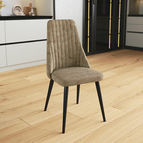 Мягкий стул «Ларри» — лаконичная модель в современном дизайне. Модель отличается высокой скругленной спинкой с ненавязчивой вертикальной прострочкой. Обивка выполнена из мягкого и приятного на ощупь велюра. Комплект из 3-4 стульев поможет создать уютную обеденную зону на кухне или столовой. Также стул можно использовать в качестве дополнения к письменному или туалетному столу.