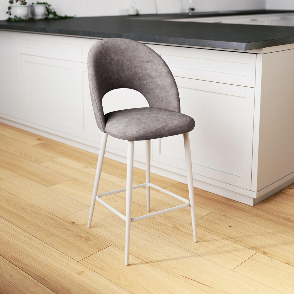 Полубарный стул «Артур» украсит кухню в любом современном стиле. Дизайн модели отличается скругленной спинкой и прорезью между спинкой и сиденьем. Мягкая велюровая ткань отлично пропускает воздух и отличается высокой износоустойчивостью. Комплект из двух-четырёх стульев станет отличным дополнением к островной кухне или барной стойке.