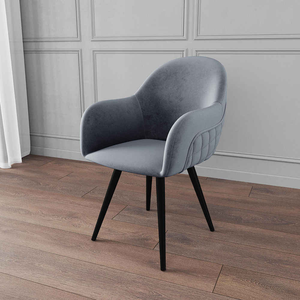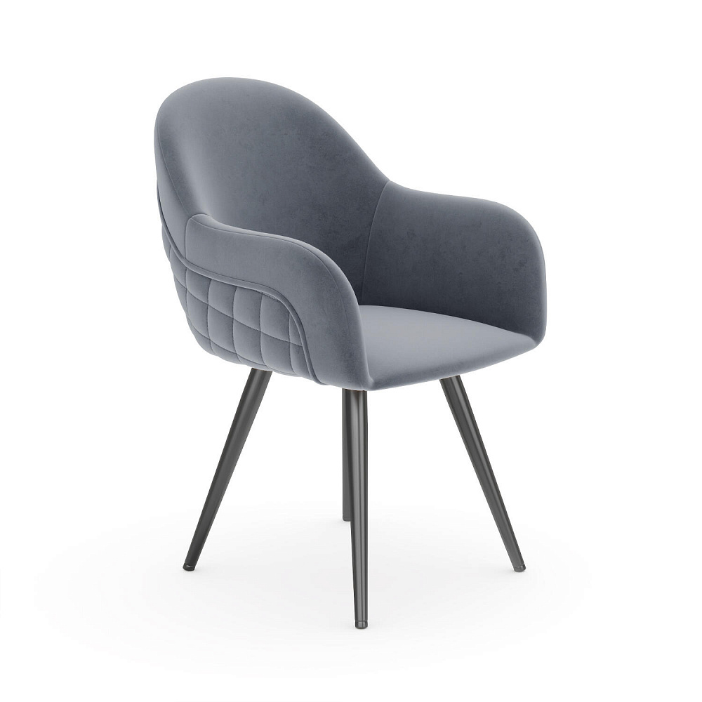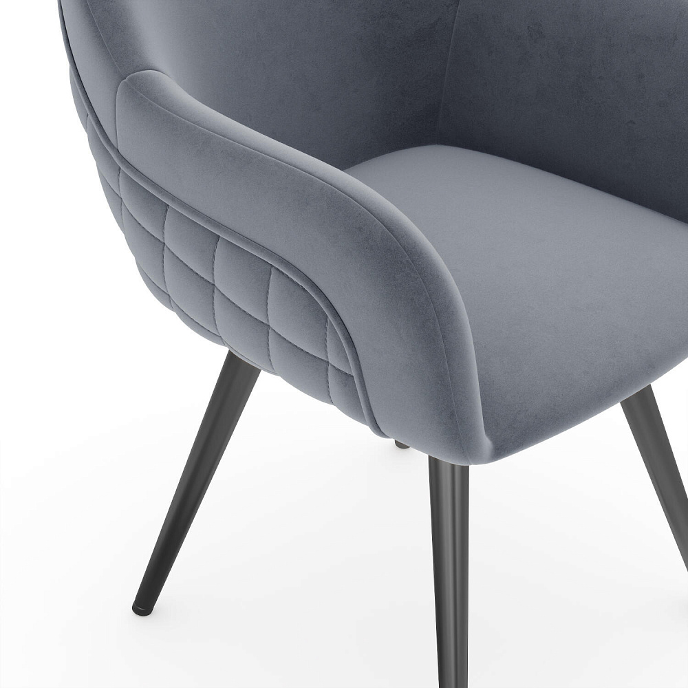 Мягкий стул с подлокотниками «Майкл» станет частью обеденной группы в современном или классическом интерьере. Обратная сторона спинки и подлокотников украшена ромбовидной строчкой и объемным кантом. Благодаря поворотному механизму можно удобно расположиться на стуле, не перемещая его по полу. Обивка модели выполнена из приятного на ощупь матового велюра. Комплект из нескольких стульев поможет создать акцентную обеденную зону в интерьере. Также стул можно использовать вместе с туалетным или письменным столом.