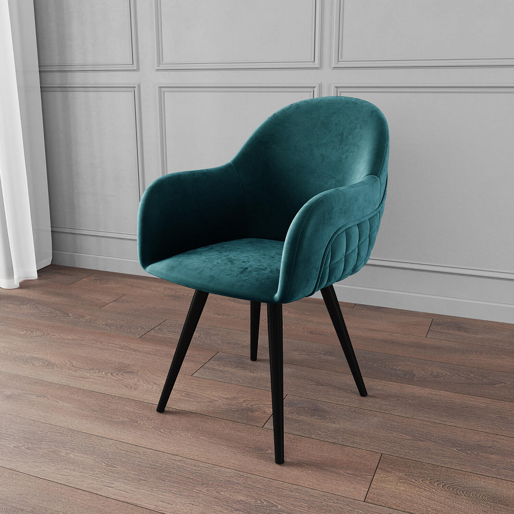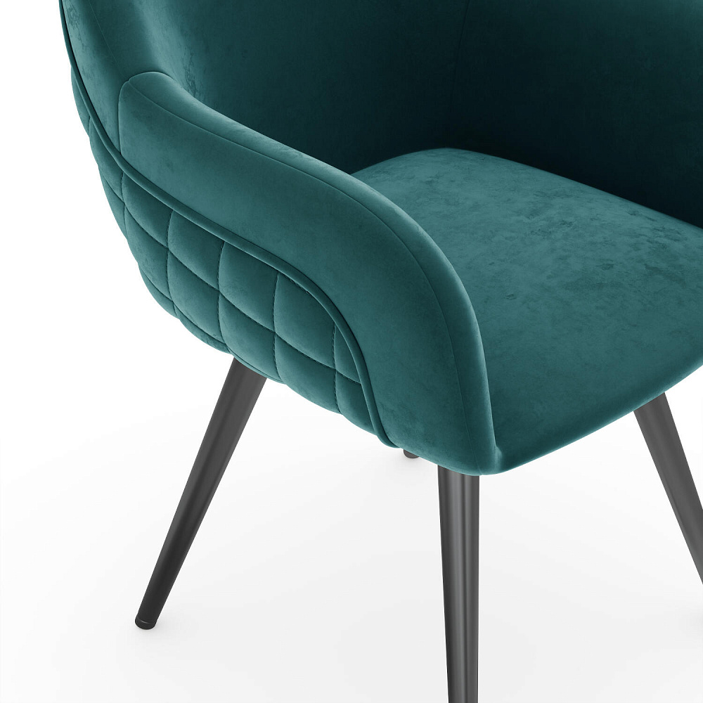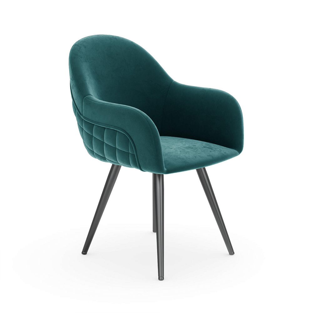 Мягкий стул с подлокотниками «Майкл» станет частью обеденной группы в современном или классическом интерьере. Обратная сторона спинки и подлокотников украшена ромбовидной строчкой и объемным кантом. Благодаря поворотному механизму можно удобно расположиться на стуле, не перемещая его по полу. Легкий блеск велюровой обивки придает модели изящность, а прямые металлические опоры дополняют сложившийся образ. Комплект из нескольких стульев поможет создать акцентную обеденную зону в интерьере. Также стул можно использовать вместе с туалетным или письменным столом.
