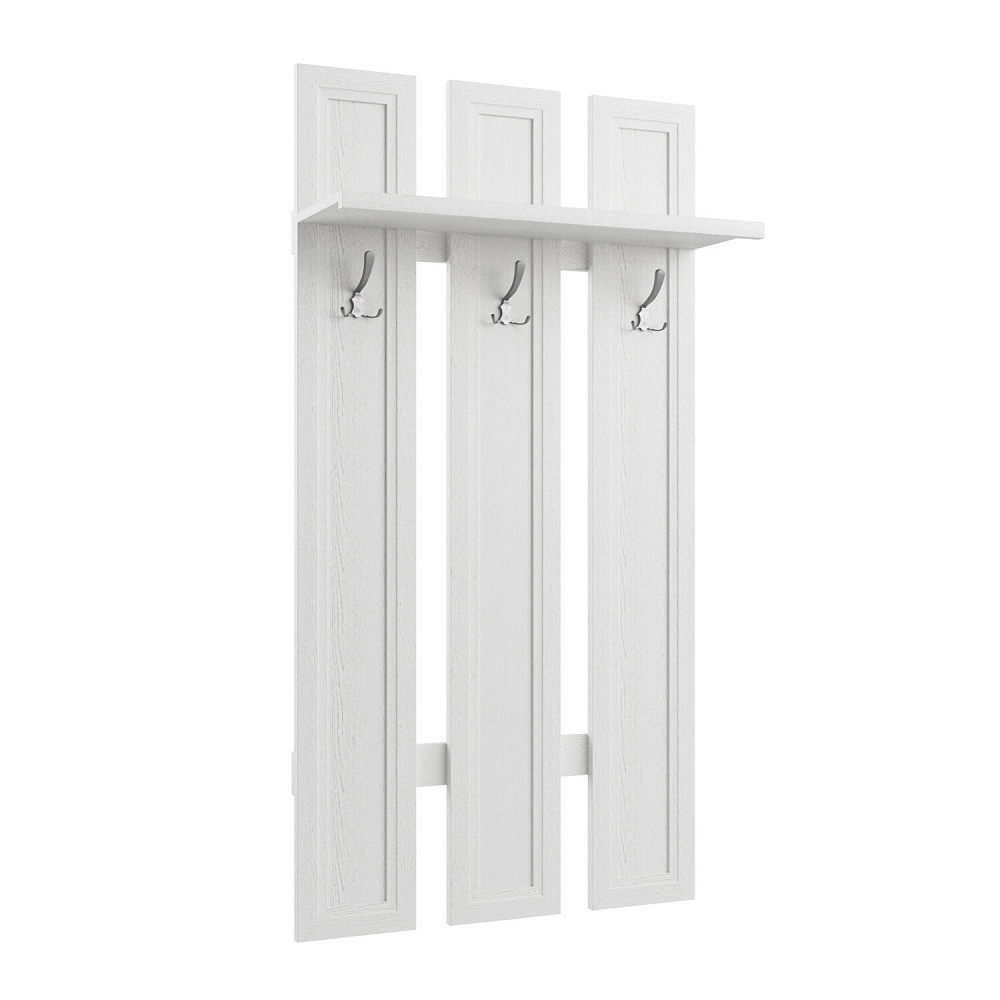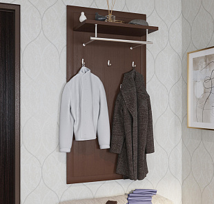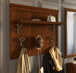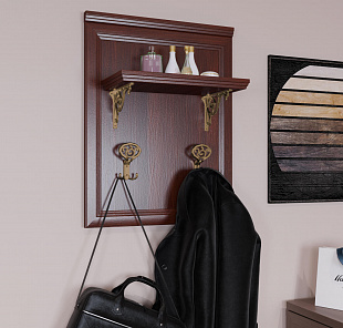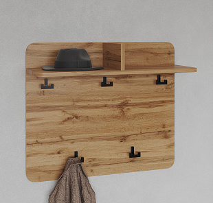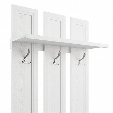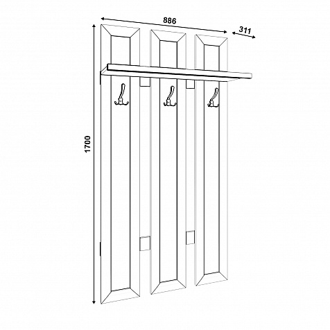 Широкая настенная вешалка «Магна» с тремя трёхрожковыми крючками и полкой для головных уборов. Модель навешивается над тумбой арт. 1830 из одноимённой коллекции или может выступать как самостоятельный элемент обстановки. Настенная вешалка в строгом, лаконичном дизайне идеально впишется в прихожую в современном стиле.