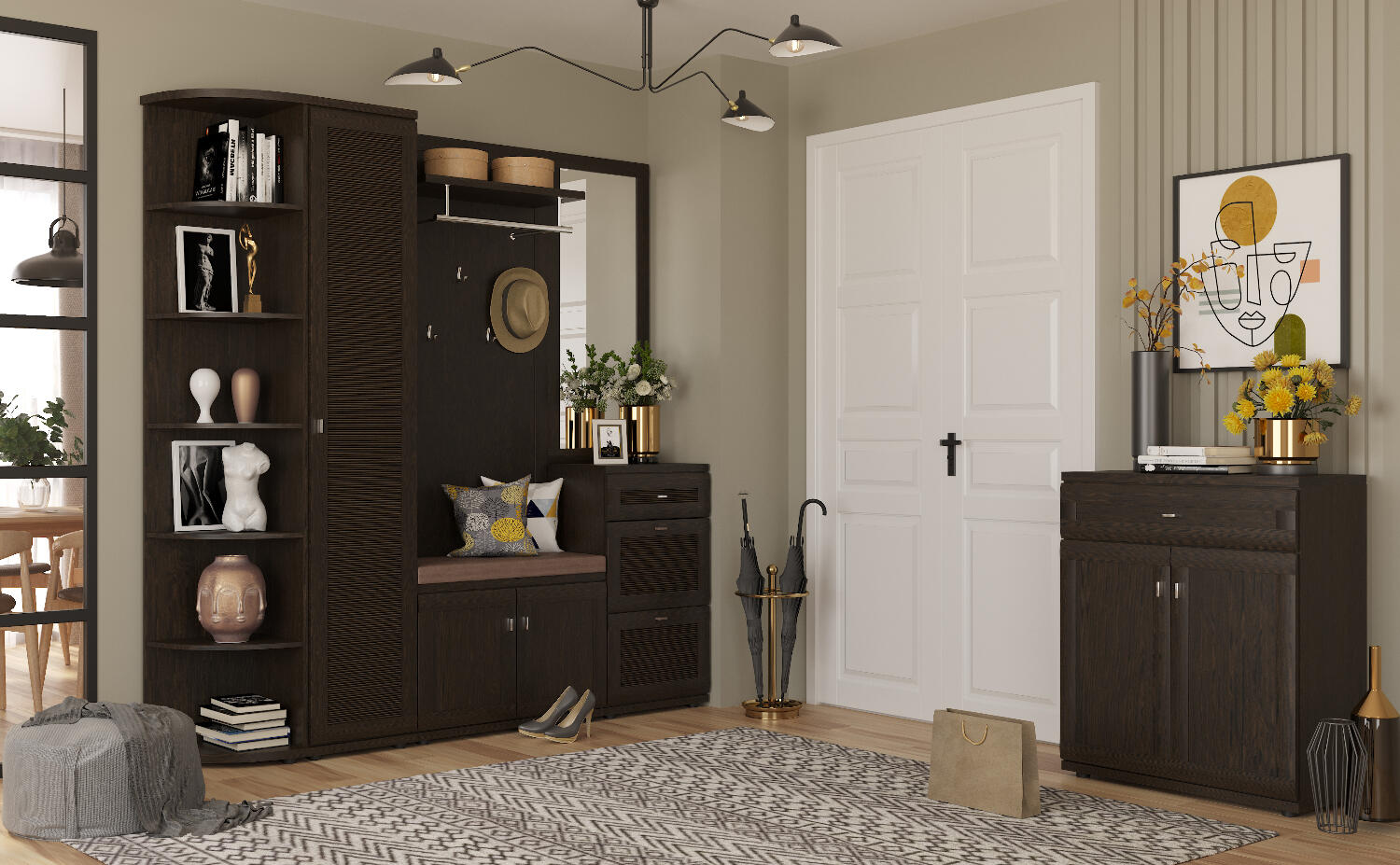 Широкая настенная вешалка «Орнета» гармонично сочетается с тумбой арт. 4770, создавая единую стилистическую композицию, или может использоваться как самостоятельный элемент интерьера.