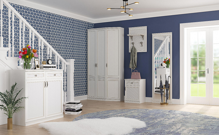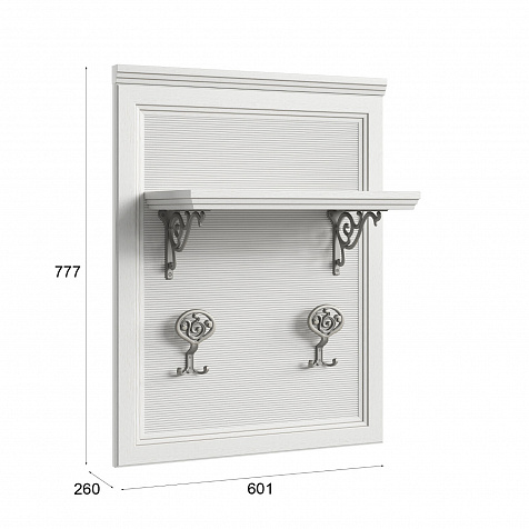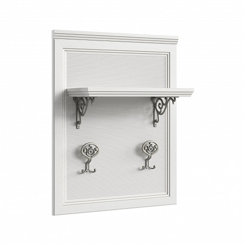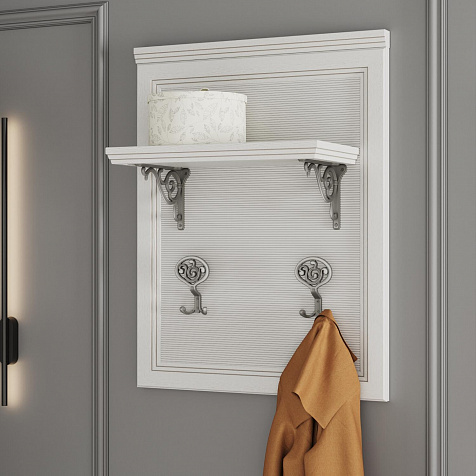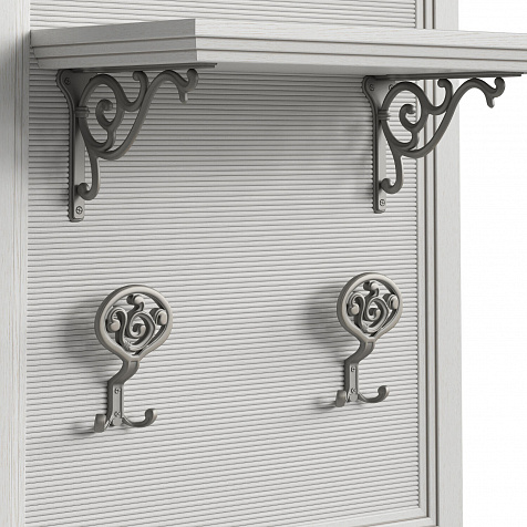 Средняя узкая настенная вешалка «Белладжио» со вставкой из натурального бамбука. Модель с двумя двухрожковыми крючками для верхней одежды и полкой для головных уборов навешивается над тумбой арт. 2134 или может использоваться как самостоятельный элемент интерьера. Стильная вешалка с изящными крючками и витыми полкодержателями гармонично дополнит неоклассический интерьер прихожей.