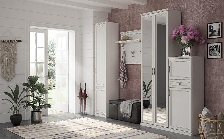 Средняя широкая настенная вешалка «Белладжио» со вставкой из натурального бамбука. Модель с тремя двухрожковыми крючками для верхней одежды и полкой для головных уборов навешивается над тумбой арт. 2130 или может использоваться как самостоятельный элемент интерьера. Стильная вешалка с изящными крючками и витыми полкодержателями гармонично дополнит неоклассический интерьер прихожей.