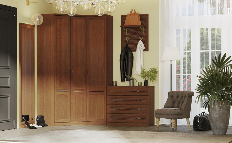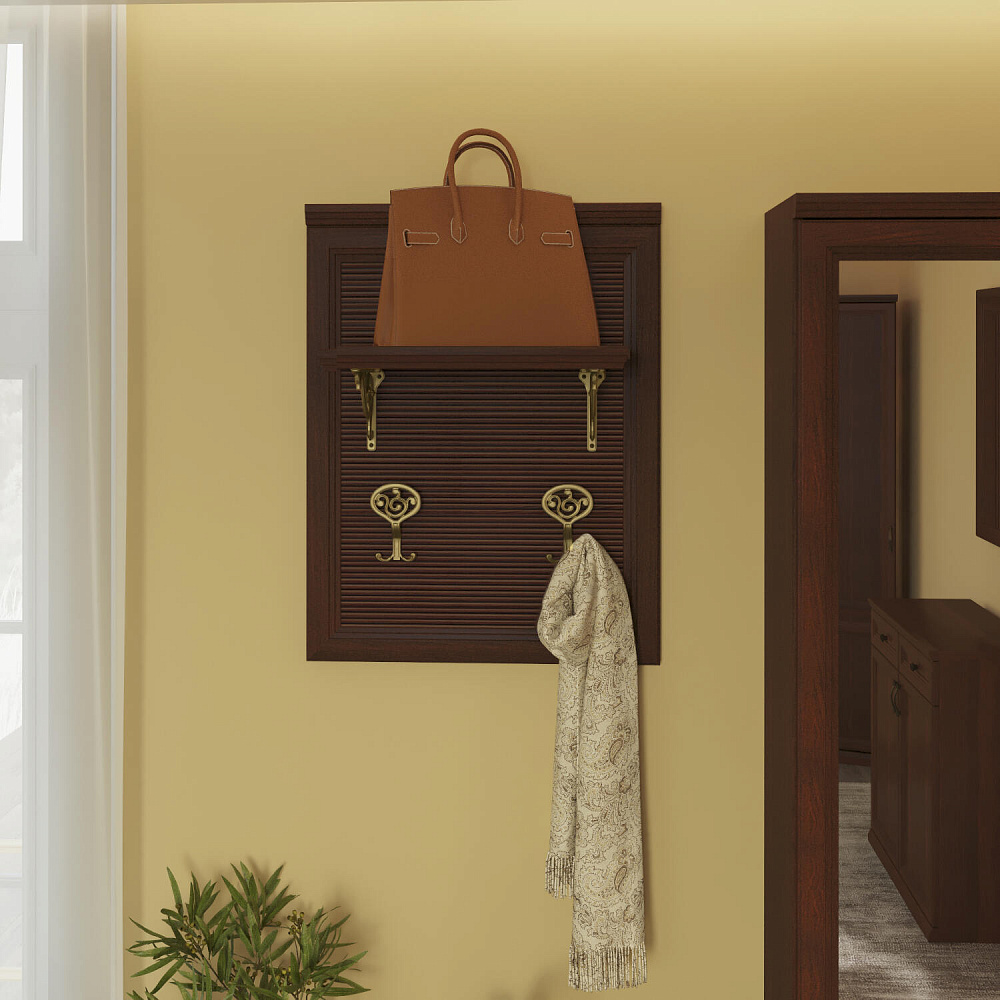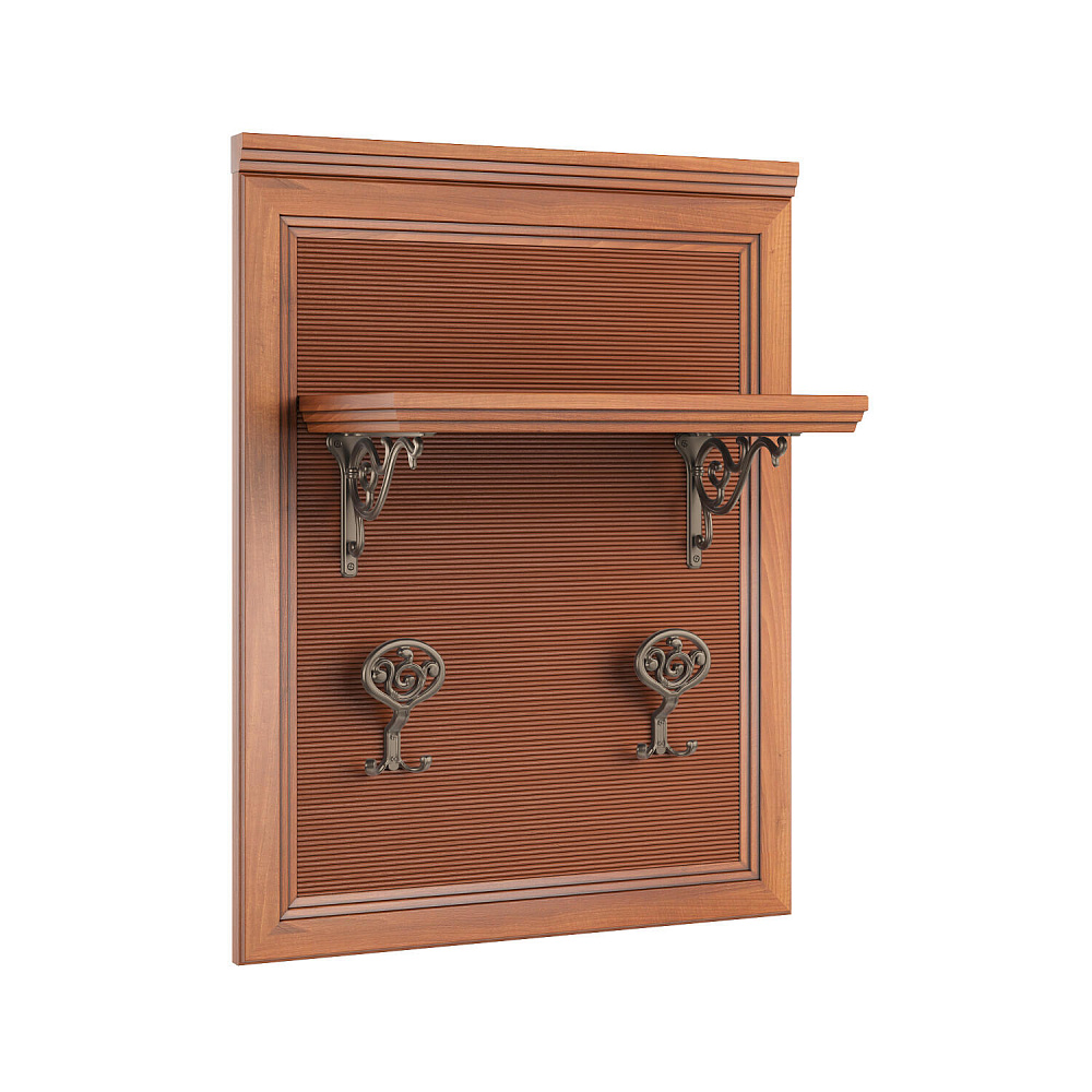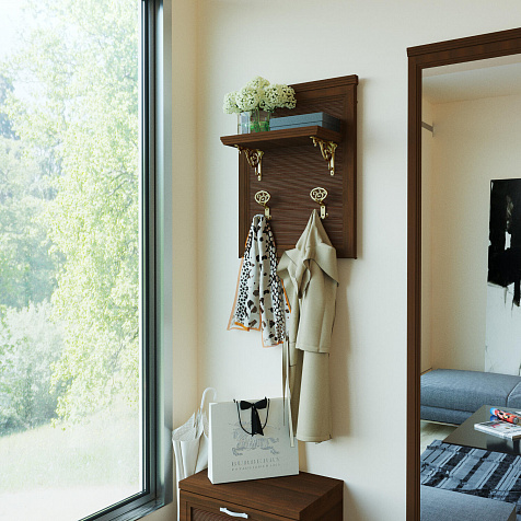 Средняя узкая настенная вешалка «Белладжио» со вставкой из натурального бамбука. Модель с двумя двухрожковыми крючками для верхней одежды и полкой для головных уборов навешивается над тумбой арт. 2134 или может использоваться как самостоятельный элемент интерьера. Стильная вешалка с изящными крючками и витыми полкодержателями гармонично дополнит неоклассический интерьер прихожей.