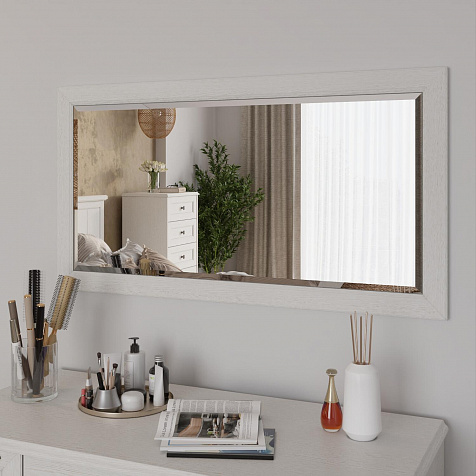 Большое настенное зеркало «Мелисса» в элегантной раме с декоративным профилем идеально дополнит мебель для спальни из одноименной коллекции. Широкое зеркальное полотно визуально расширит пространство и добавит в него света.
