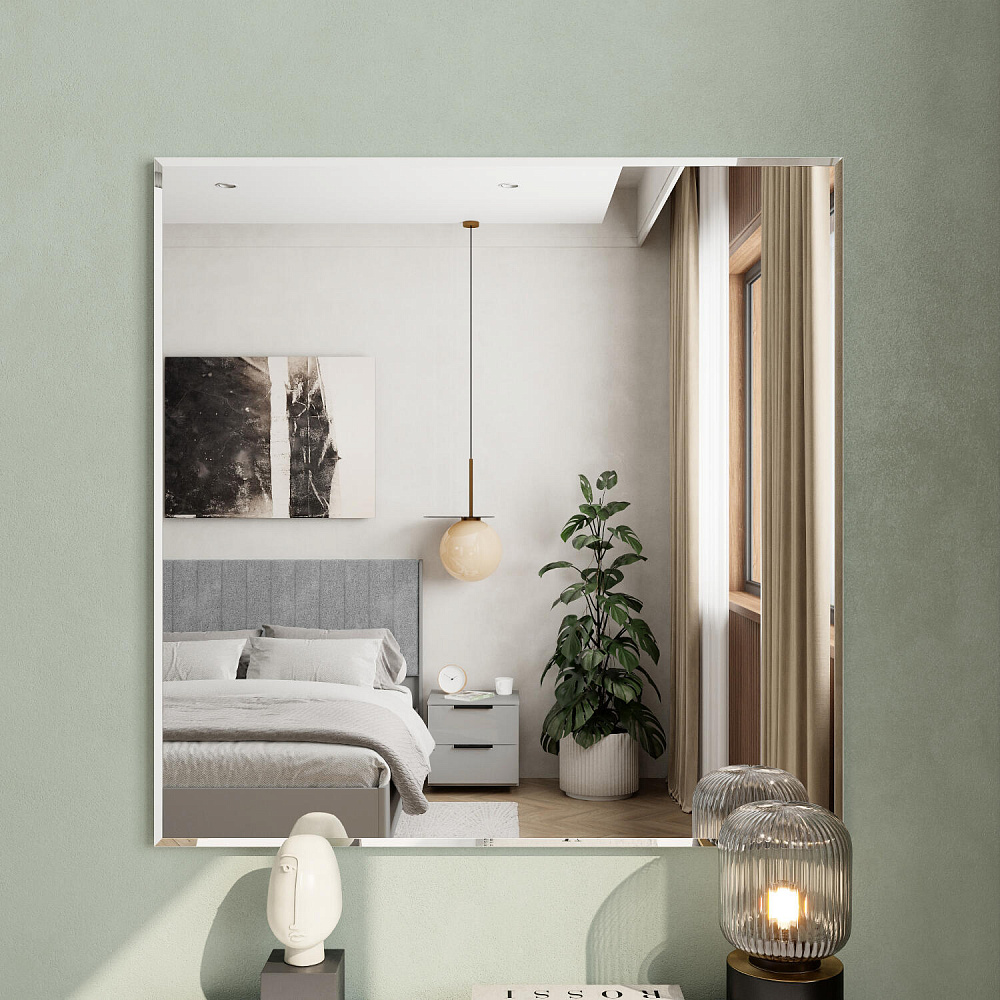 Квадратное зеркало «Адажио» с фацетом станет настоящим украшением спальни. Большое зеркальное полотно визуально расширит пространство комнаты. Оценить внешний вид перед выходом из дома или проводить косметические процедуры станет ещё приятнее.