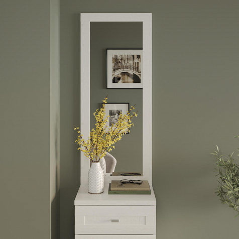 Узкое настенное зеркало «Орнета» навешивается над тумбой арт. 4777, создавая единую стилистическую композицию, или может использоваться как самостоятельная деталь интерьера. Высокое зеркальное полотно поможет визуально увеличить пространство прихожей.