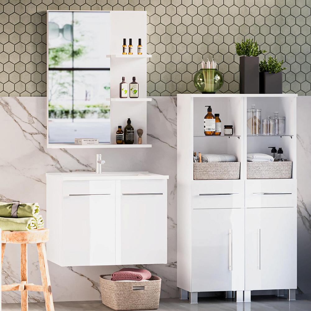 Настенное зеркало «Аврора» с тремя полками украсит стены ванной комнаты в современном стиле.
