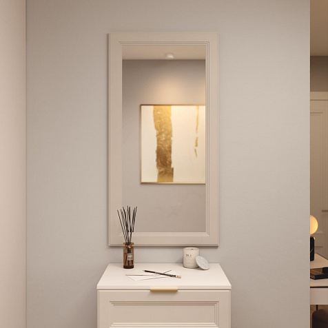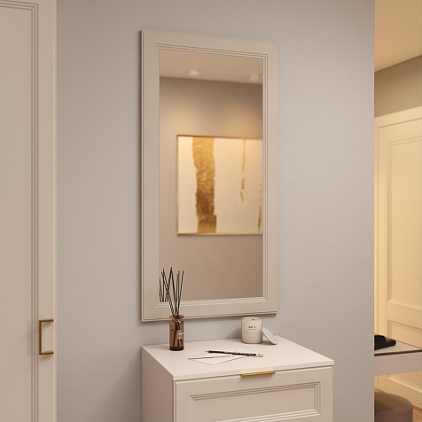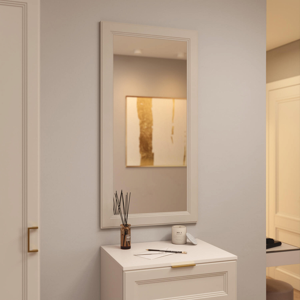 Настенное прямоугольное зеркало «Женева» идеально подойдет к мебели из одноименной коллекции, а также может использоваться как самостоятельный элемент интерьера. Большое зеркальное полотно поможет визуально увеличить пространство прихожей, а рама с фрезеровкой добавит интерьеру нотку элегантности.