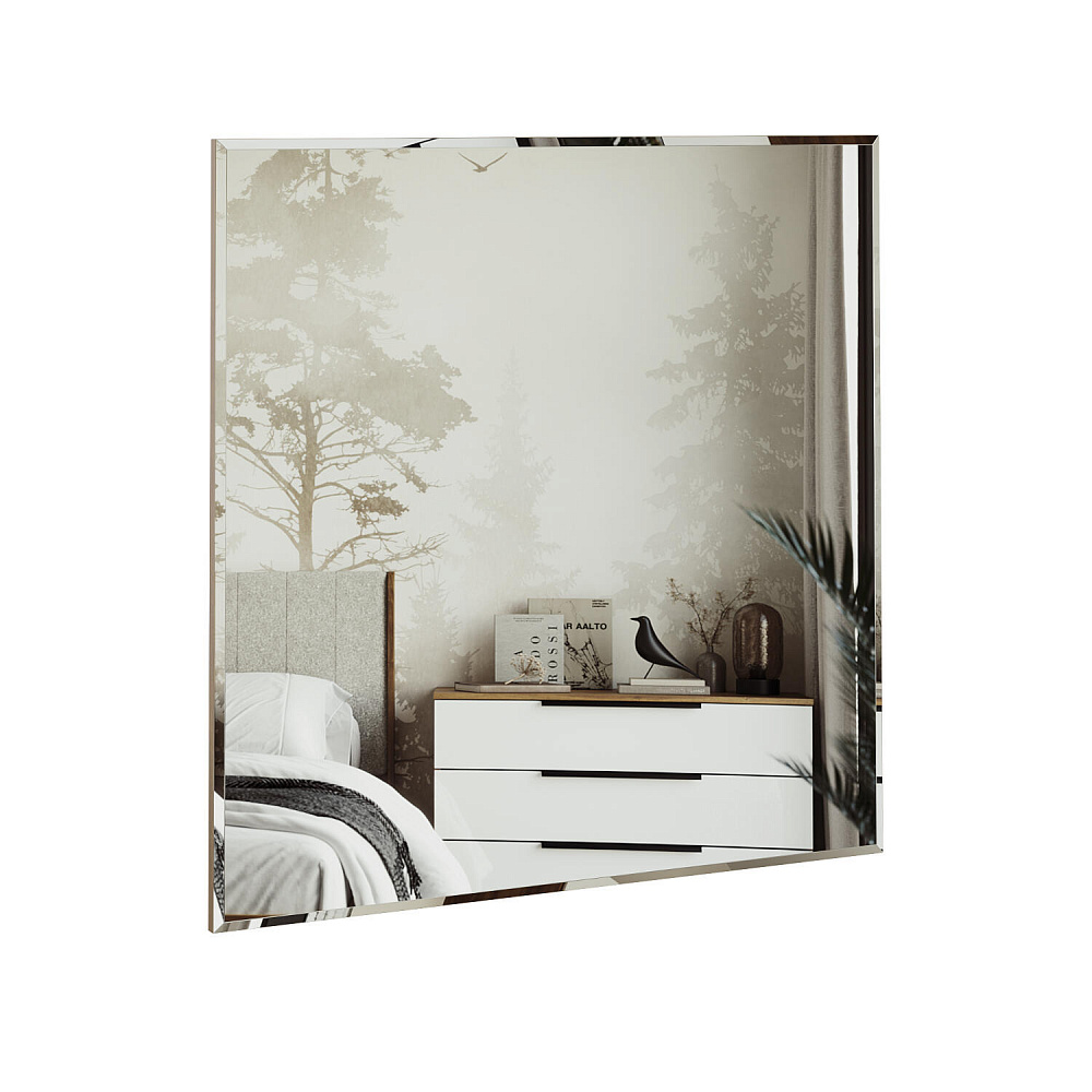 Квадратное зеркало «Адажио» с фацетом станет настоящим украшением спальни. Большое зеркальное полотно визуально расширит пространство комнаты. Оценить внешний вид перед выходом из дома или проводить косметические процедуры станет ещё приятнее.