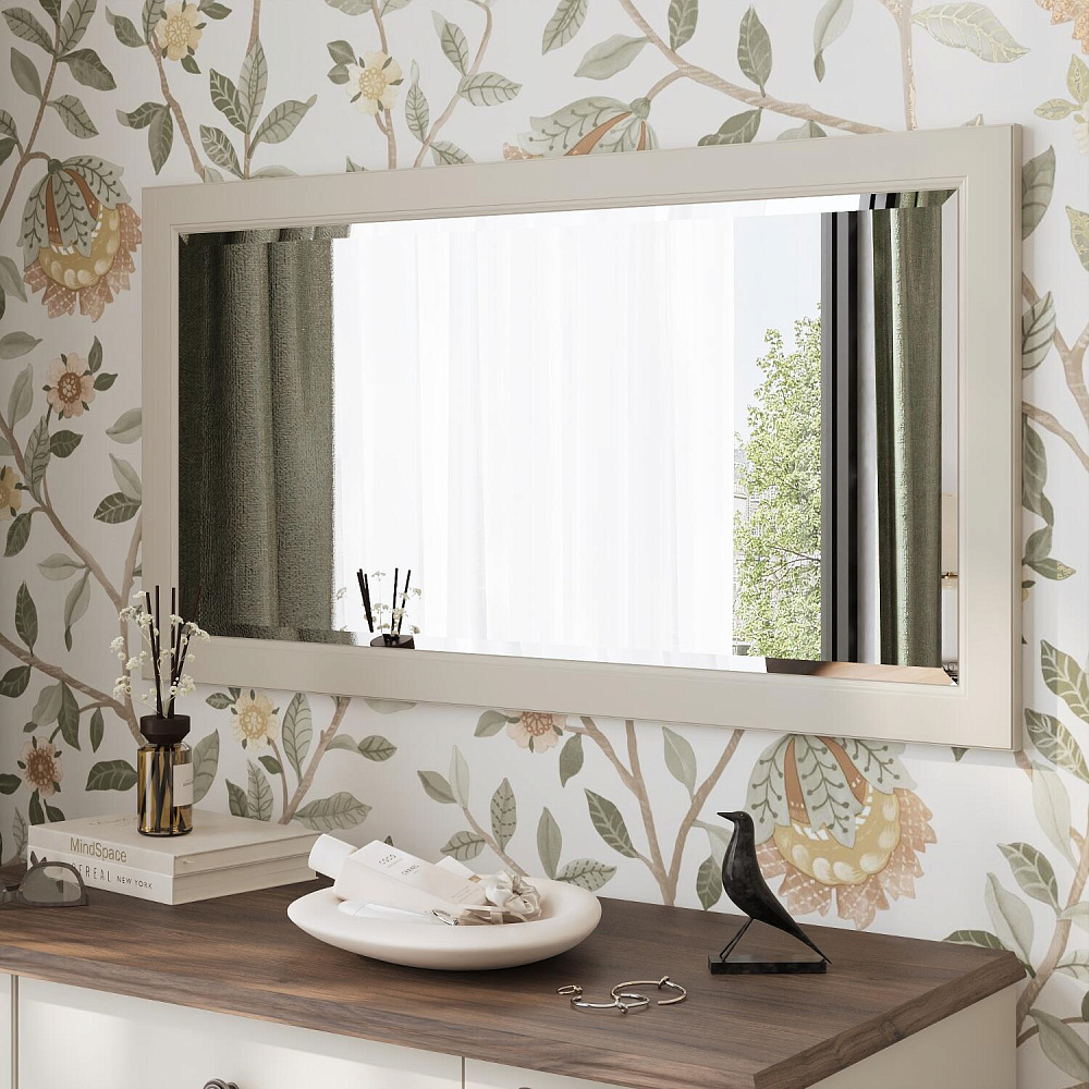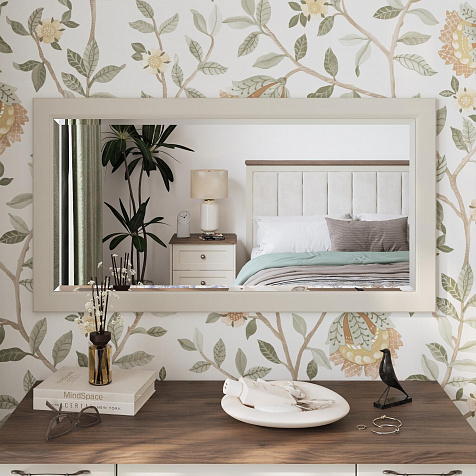 Большое настенное зеркало «Мелисса» в элегантной раме с декоративным профилем идеально дополнит мебель для спальни из одноименной коллекции. Широкое зеркальное полотно визуально расширит пространство и добавит в него света.