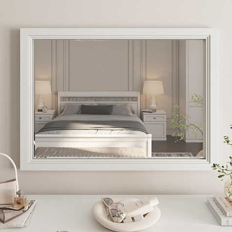Классическое прямоугольное зеркало «Белладжио» в объемной элегантной раме. Модель может использоваться и как самостоятельный элемент декора интерьера, и в качестве дополнительного модуля к туалетному столику арт. 2248 или комоду арт. 2241. Зеркало вешается на стену в вертикальном или горизонтальном положении.