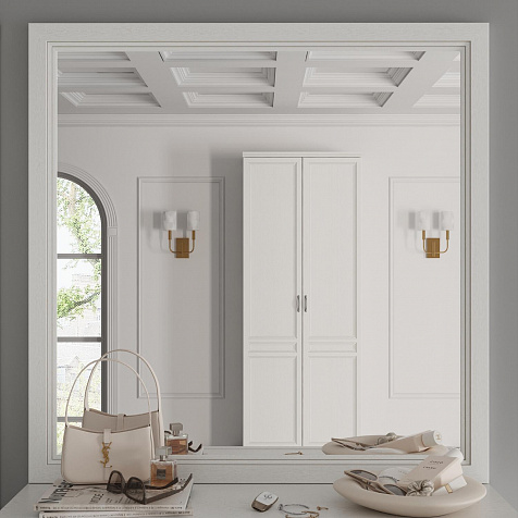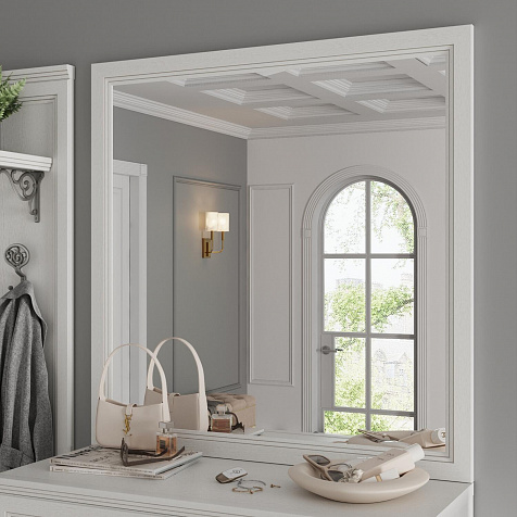 Настенное квадратное зеркало «Белладжио» навешивается над тумбой арт. 2138 из одноименной коллекции или может использоваться как самостоятельный элемент интерьера. Большое зеркальное полотно поможет визуально увеличить пространство прихожей.