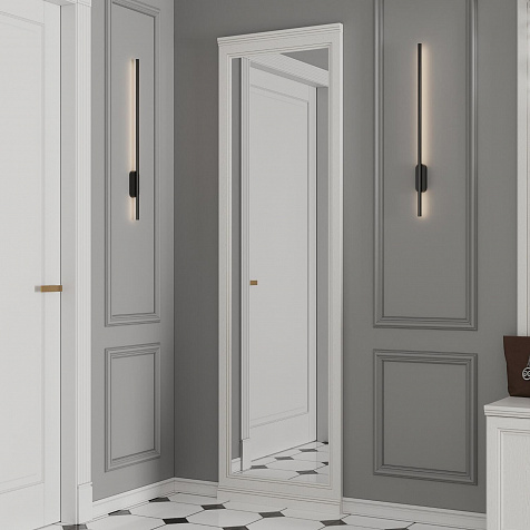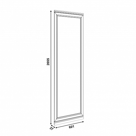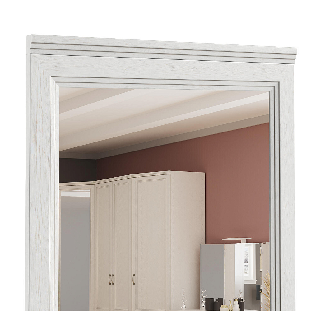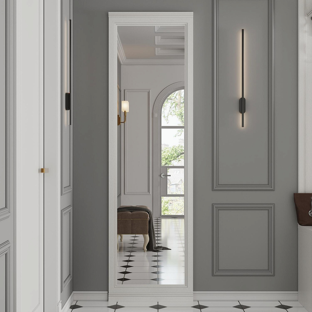 Напольное зеркало «Белладжио» высотой 2055 мм устанавливается как отдельный элемент с выравниванием по верхнему краю полки настенной вешалки. Зеркальное полотно в полный рост не только поможет оценить внешний вид перед выходом, но и визуально увеличит пространство прихожей.
