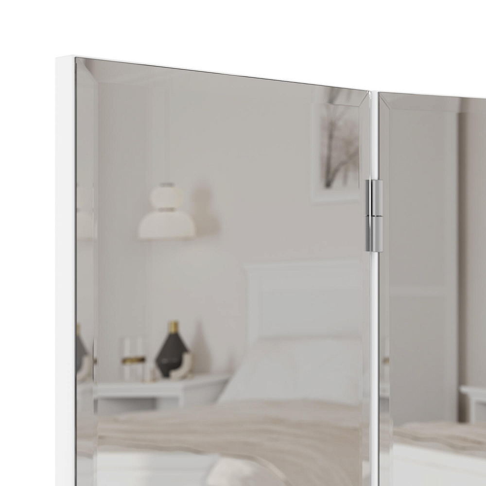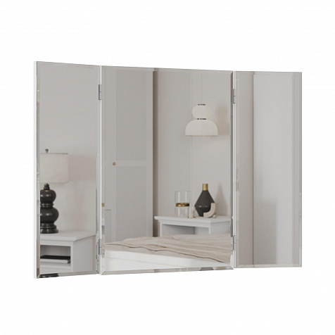 Зеркало-трельяж «Шарли» дополнит туалетный столик в стиле прованс. Модель представляет собой конструкцию из центральной панели и двух подвижных зеркальных боковин. Зеркало пригодится для нанесения макияжа и создания причесок: сдвинув боковые панели к центру, вы сможете оценить результат с разных сторон.