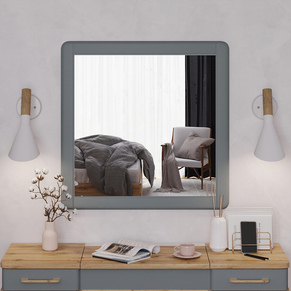 Классическое квадратное зеркало «Кассия» в строгой лаконичной раме. Модель может использоваться и как самостоятельный элемент декора интерьера, и в качестве дополнительного модуля.
