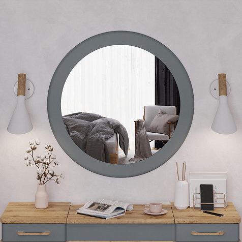Классическое круглое зеркало «Кассия» в строгой лаконичной раме. Модель может использоваться и как самостоятельный элемент декора интерьера, и в качестве дополнительного модуля.