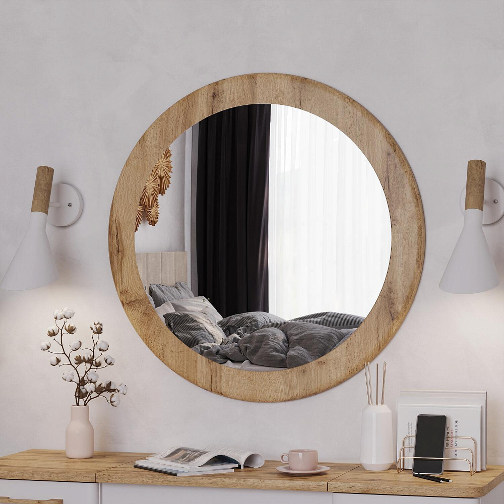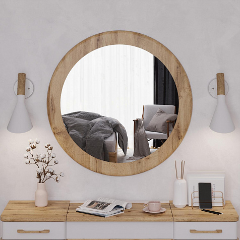 Классическое круглое зеркало «Кассия» в строгой лаконичной раме. Модель может использоваться и как самостоятельный элемент декора интерьера, и в качестве дополнительного модуля.