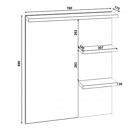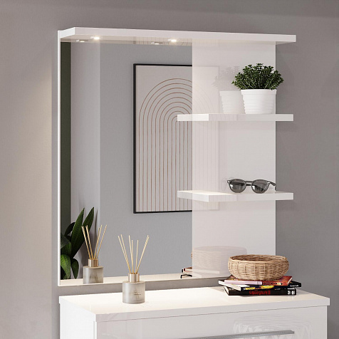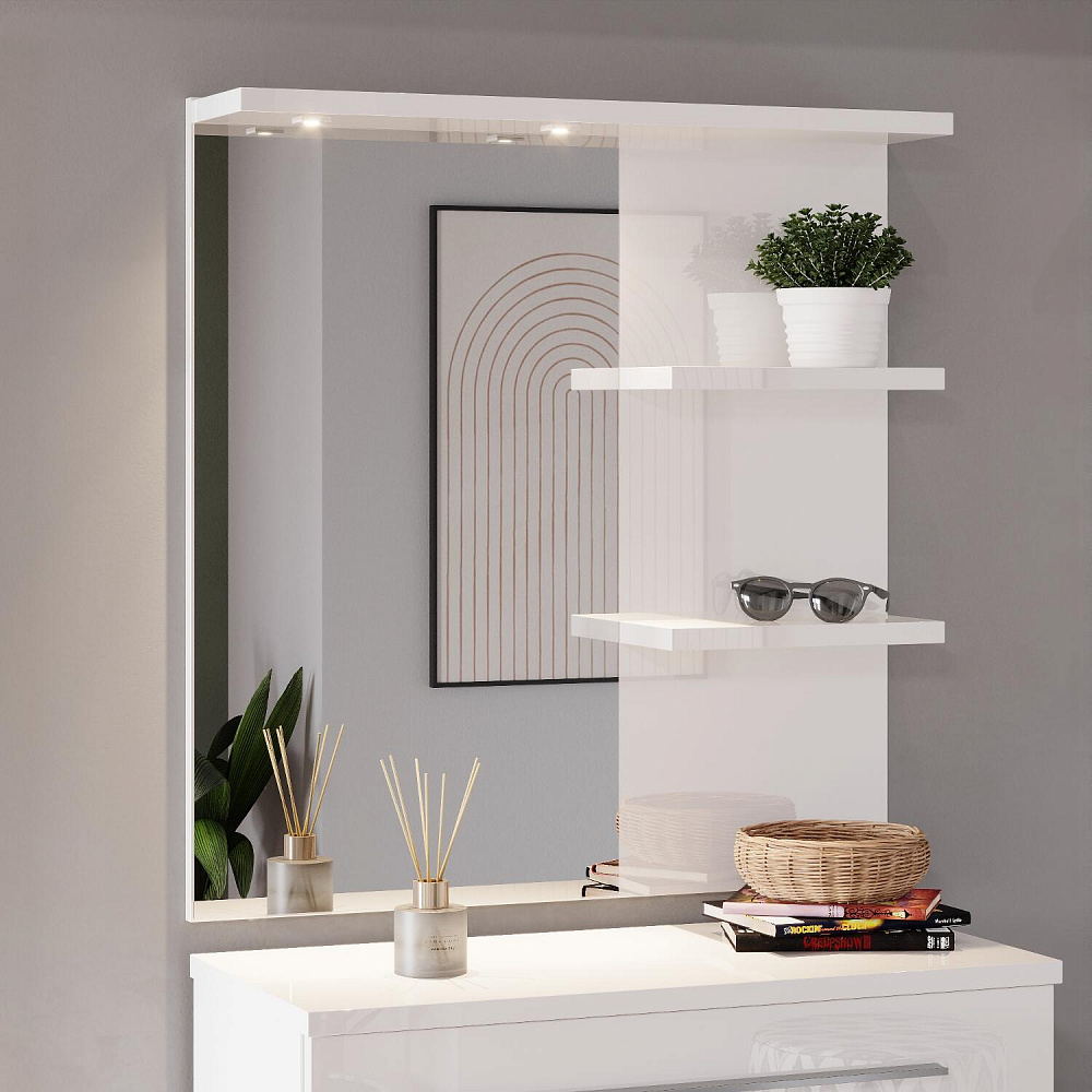Настенное зеркало Piano с тремя полками украсит стены прихожей в современном стиле. На полках поместятся повседневные головные уборы и аксессуары.