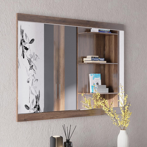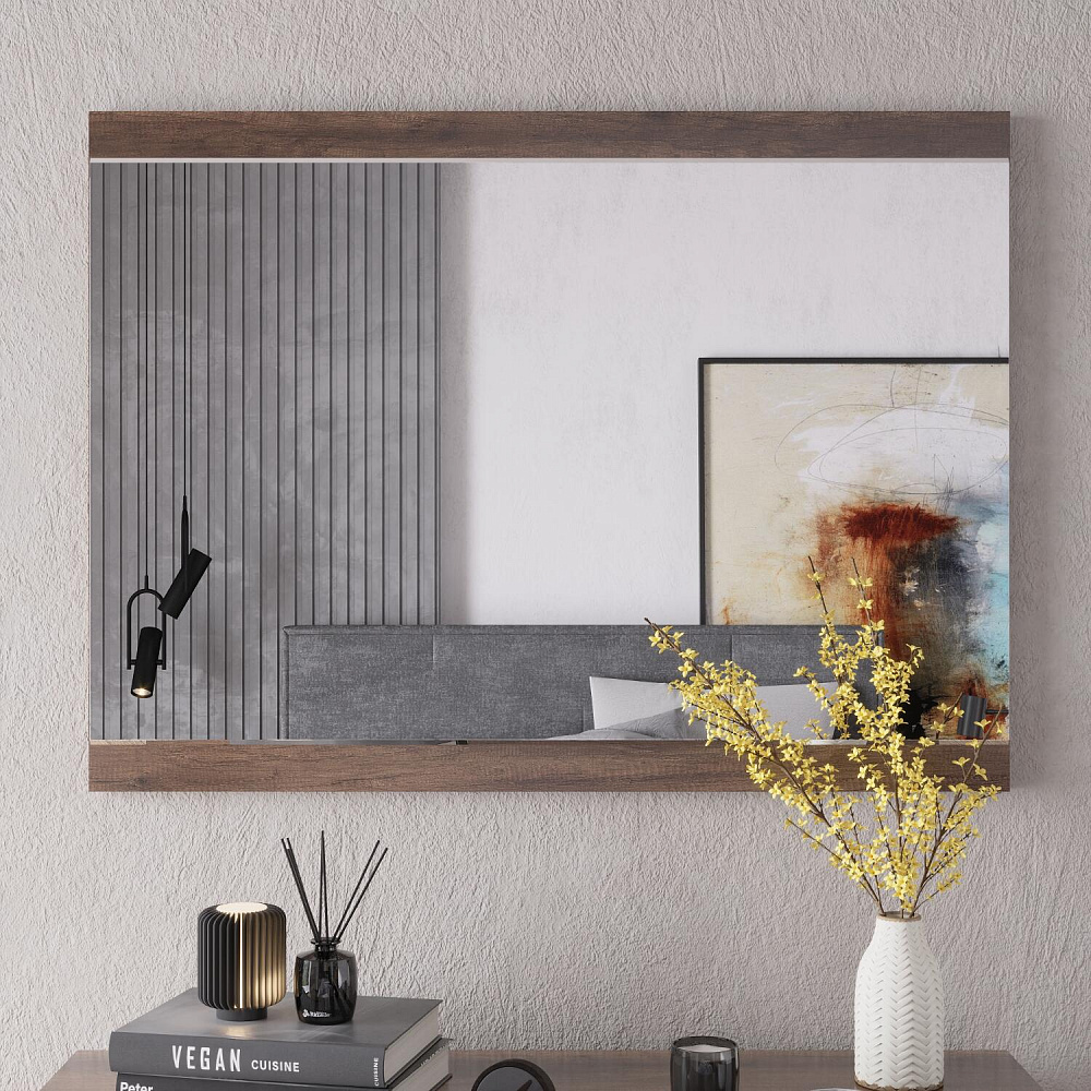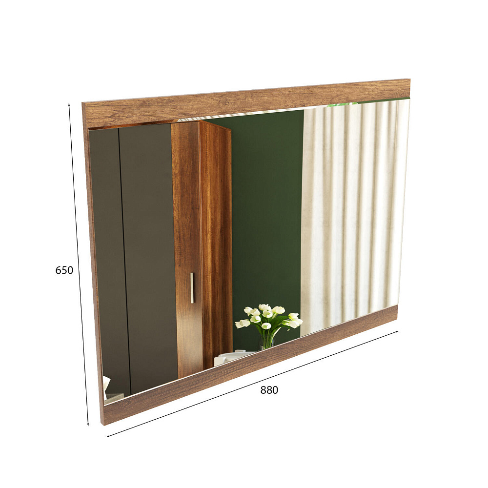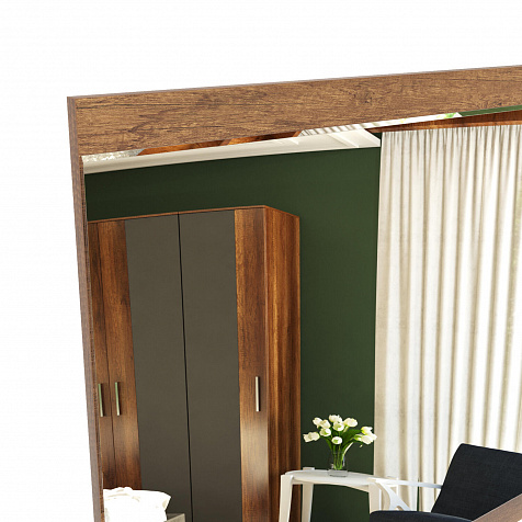 Навесное зеркало «Астория» в современном стиле — идеальное сочетание практичных материалов и глубокого оттенка дуба каньон. Зеркало можно повесить над туалетным столом арт. 6614 или комодами арт. 6611, 6622.