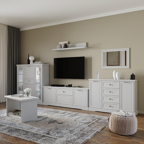 Навесное зеркало «Луара» в элегантной раме можно сочетать с тумбой (арт. 7944 д) . Благодаря фрезерованной раме зеркало станет роскошным дополнением к спальне в стиле прованс или неоклассика.