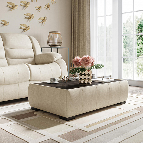 Стильный журнальный столик «Ридберг» со столешницей из натурального итальянского шпона и мягким корпусом, который оформлен аккуратной вертикальной прострочкой. Модная лаконичная модель станет органичным продолжением диванов из одноимённой коллекции, а также прекрасно впишется в гостиную, оформленную практически в любом интерьерном решении.