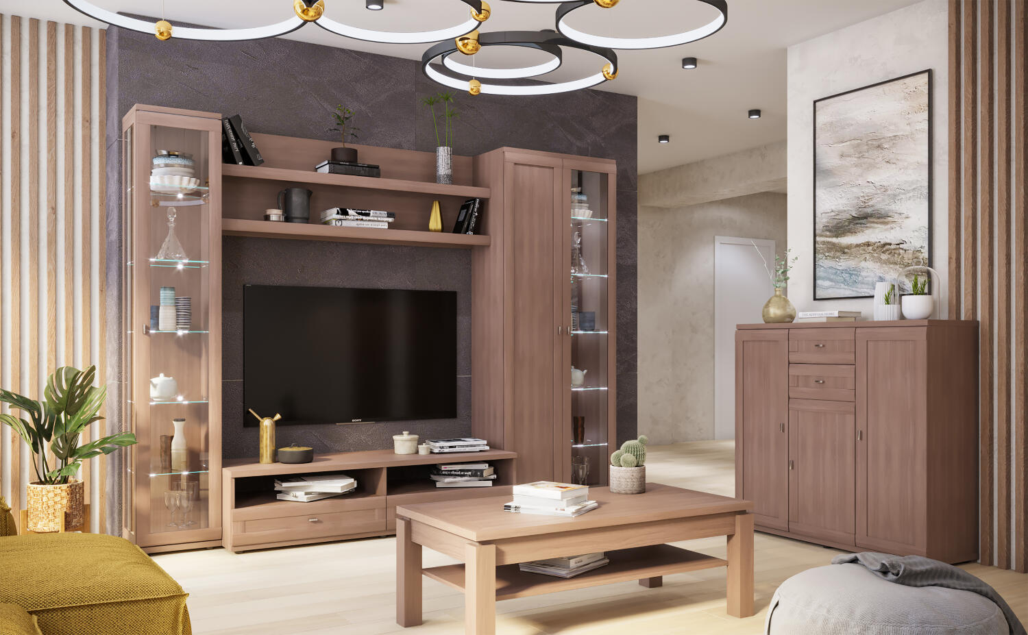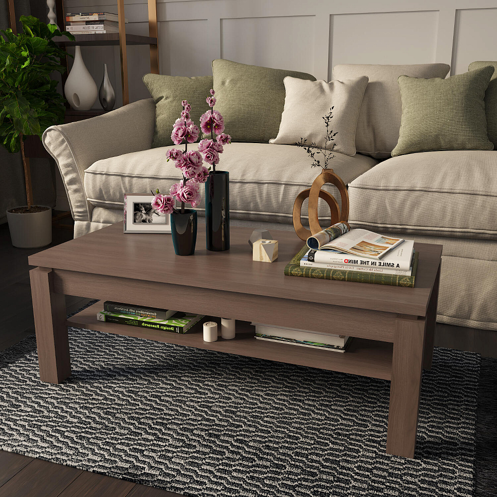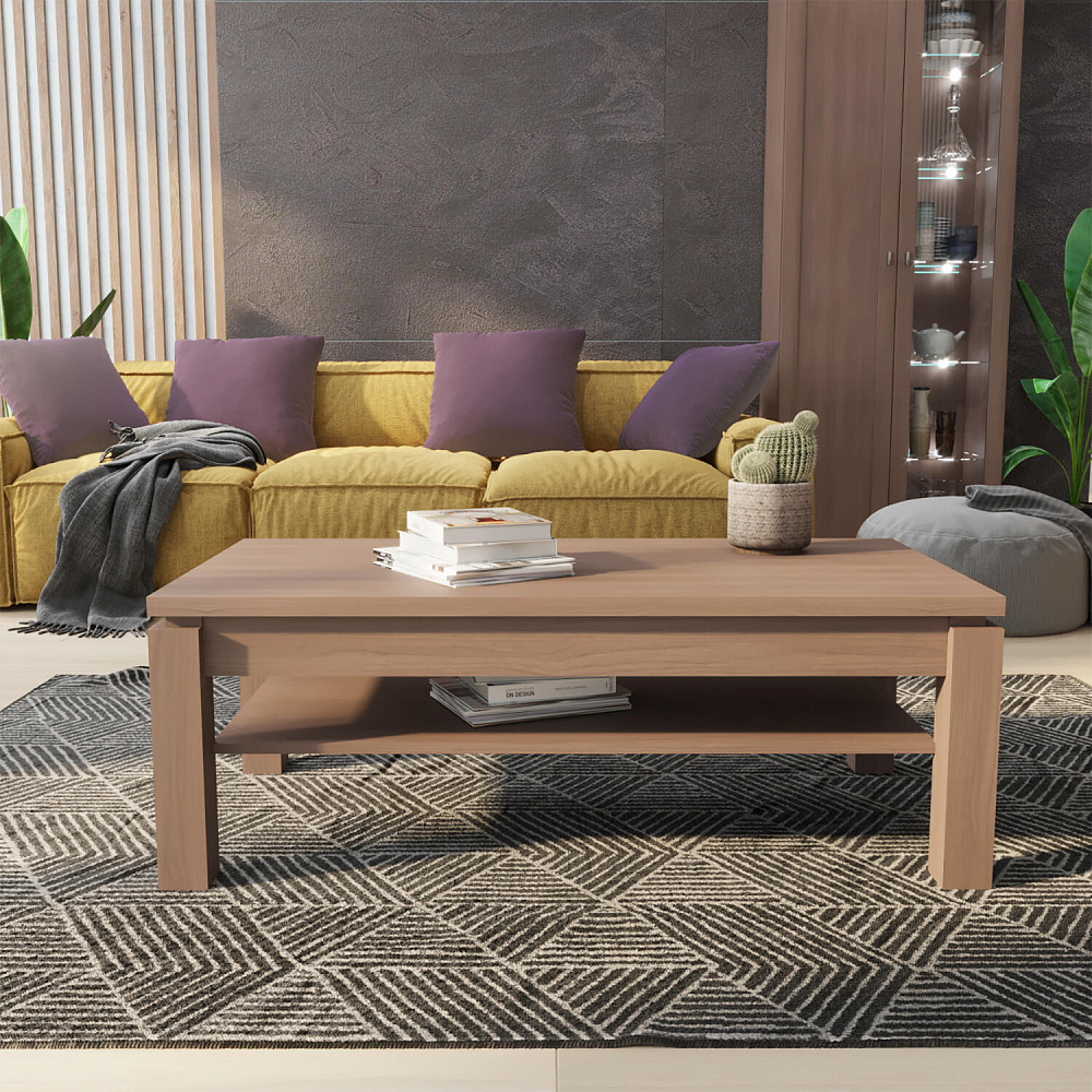Журнальный столик «Орнета» — широкий прямоугольный стол с утолщенной столешницей, под которой находится полка для книг, журналов и пульта от телевизора. Элегантная и лаконичная модель станет завершающим элементом гостиной и удобным местом для сервировки чая к приему гостей.