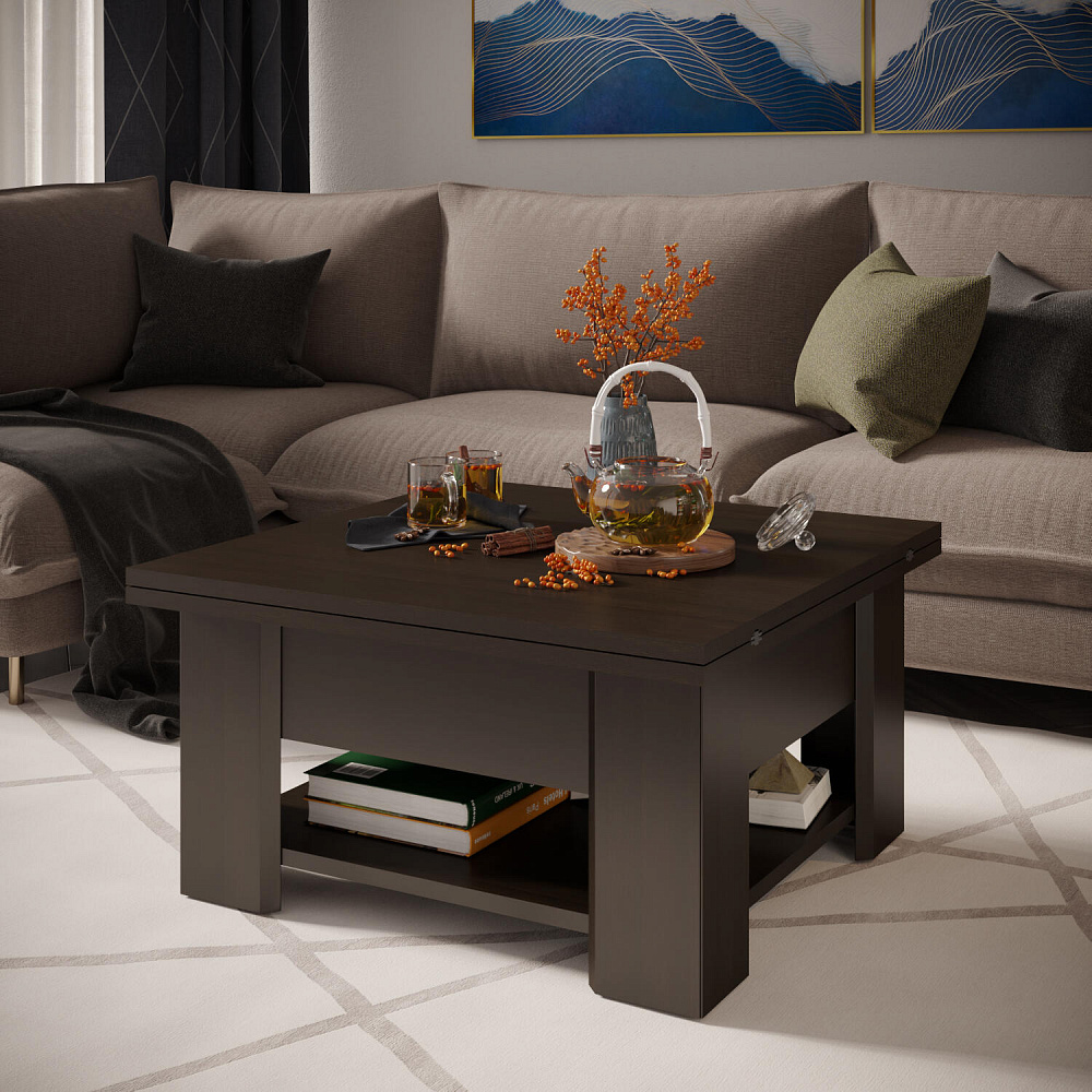 Универсальный стол-трансформер может выступать в качестве журнального столика, рабочей консоли или полноценного обеденного стола. Стильный стол найдет свое место практически в любом интерьере, став его полезной деталью.