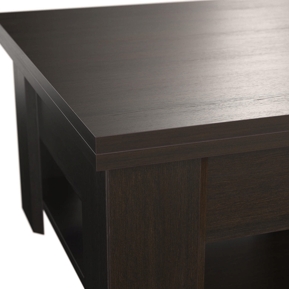 - Три положения столешницы. В сложенном варианте модель представляет собой журнальный столик, на котором удобно держать под рукой мелочи или сервировать чай к приходу гостей. В полуразложенном виде столешницы используются по отдельности, малая столешница при этом расположена чуть ниже основной. В полностью разложенном состоянии, модель превращается в обеденный стол на шесть персон.