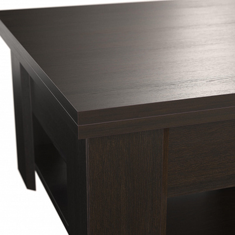 - Дополнительная полочка. Под основной столешницей между опорами расположена дополнительная полка для журналов, предметов интерьера и аксессуаров.