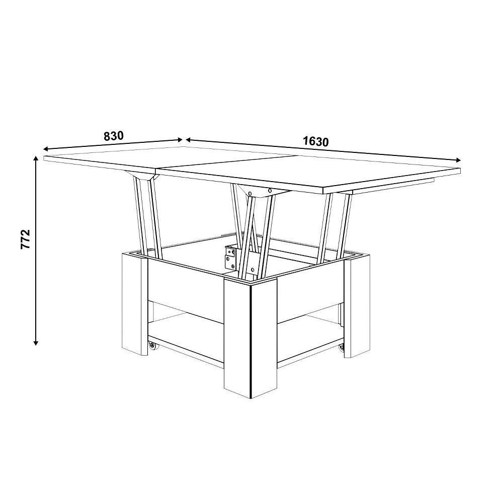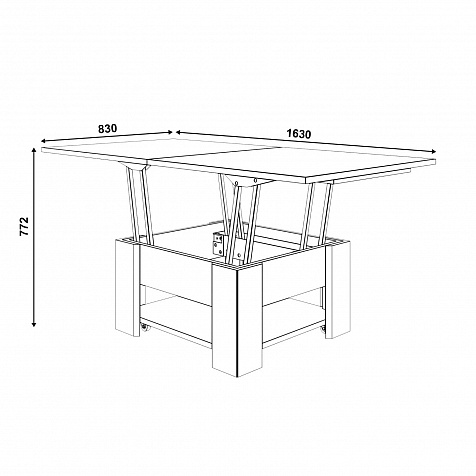 - Стальной механизм с регулировкой плавности работы. Механизм трансформации очень прост в использовании: чтобы разложить стол, достаточно поднять столешницу вверх, при этом она разделяется на две части. Чтобы превратить стол в обеденный, основная столешница раскрывается как книжка. С помощью регулировки натяжения пружины на гребенке в одном из трех положений можно настроить комфортную плавность работы механизма трансформации.