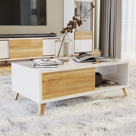 Журнальный столик «Вида» на изящных ножках добавит в интерьер гостиной нотки яркого ретро. Модель вдохновлена стилем 60-х, при этом имеет современный дизайн с интересным сочетанием цветов. Простые формы и комбинация спокойных, сочных оттенков создадут лёгкое ностальгическое настроение.