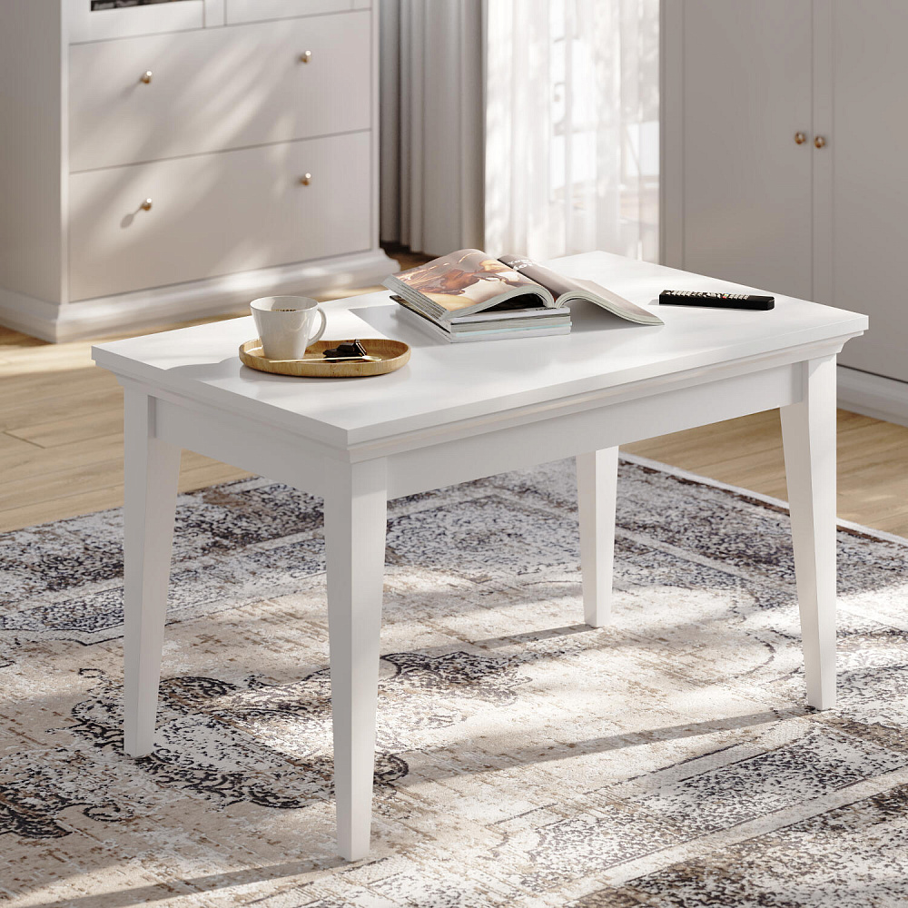 Журнальный столик «Шарли» идеально дополнит собой гостиную в классическом стиле или изысканном стиле прованс. Классический белый цвет, прямые линии и лаконичный дизайн сделают столик украшением комнаты, а крепкая широкая столешница позволит провести уютный вечер с книгой, журналом или чашкой чая.