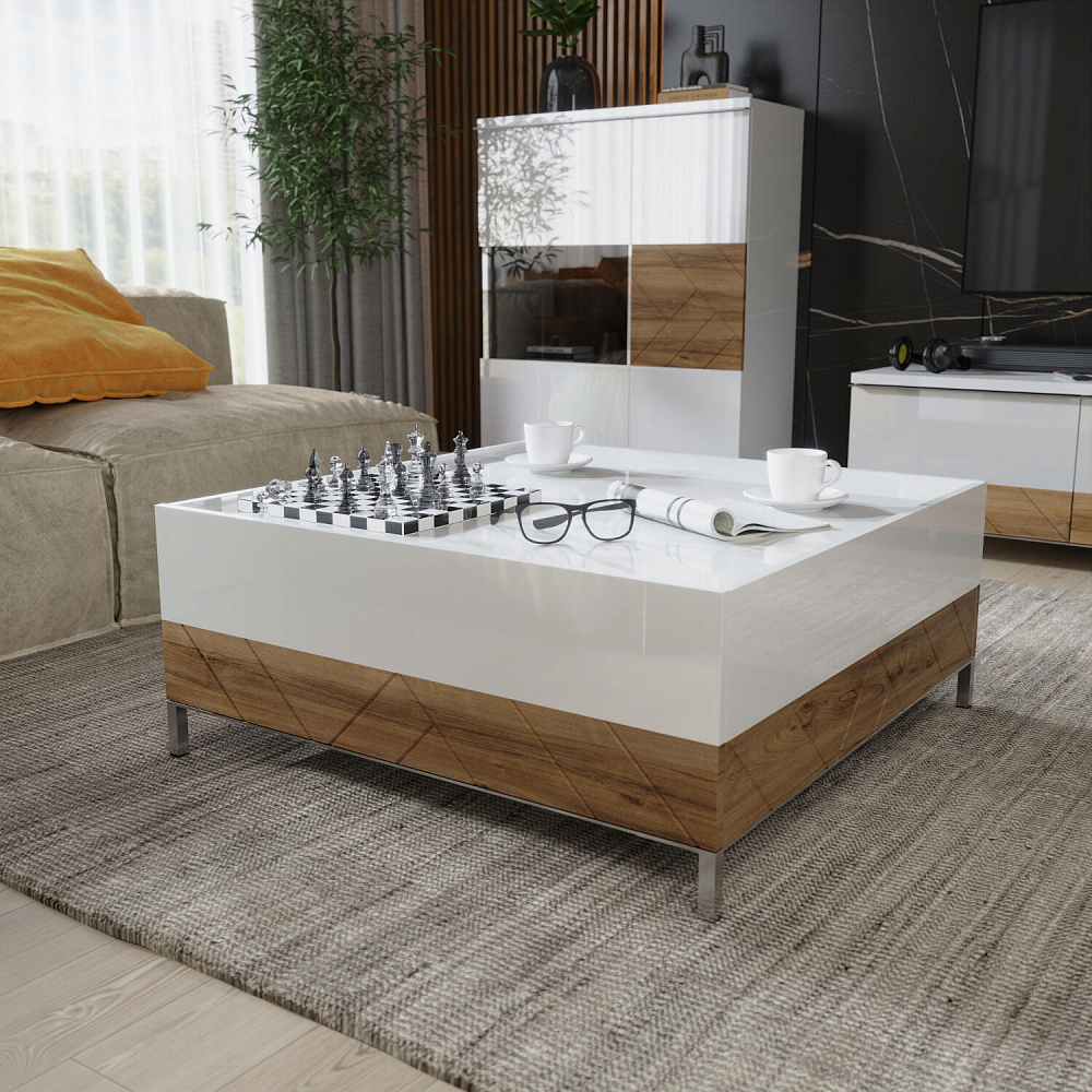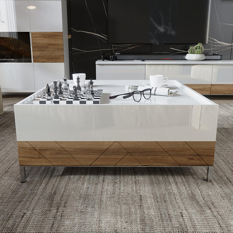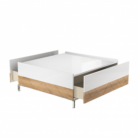 Журнальный столик «Авис» с двумя ящиками прекрасно дополнит интерьер современной гостиной. Сочетание белых фасадов с теплым матовым декором и четкими геометрическими фрезерованными линиями подчёркивает красоту лаконичного дизайна модели.